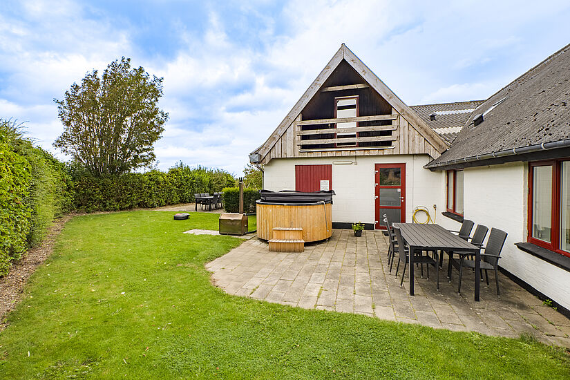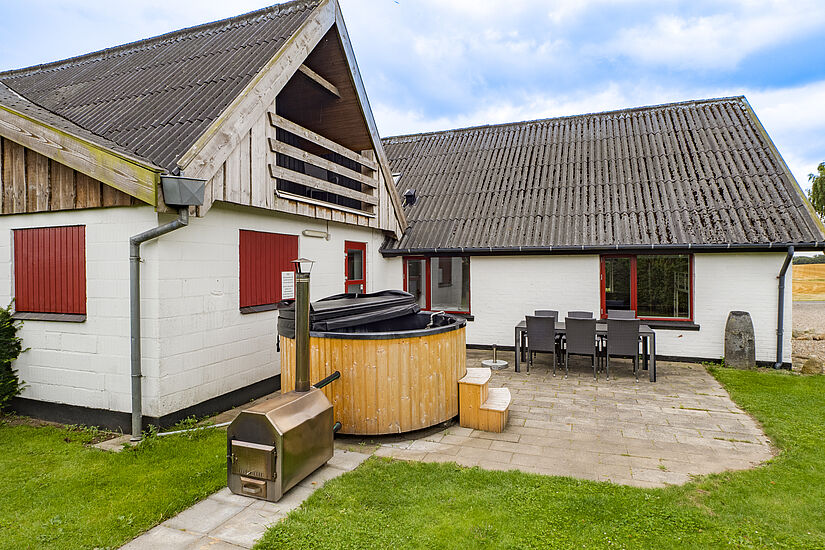 Intet slår en sommeraften, hvor man sidder ude og griller. Der er 2 kuglegrill til kul. Det store feriehus har fem terrasser med havemøbler til de lange sommeraftener. Bålpladsen kan også tages i brug.